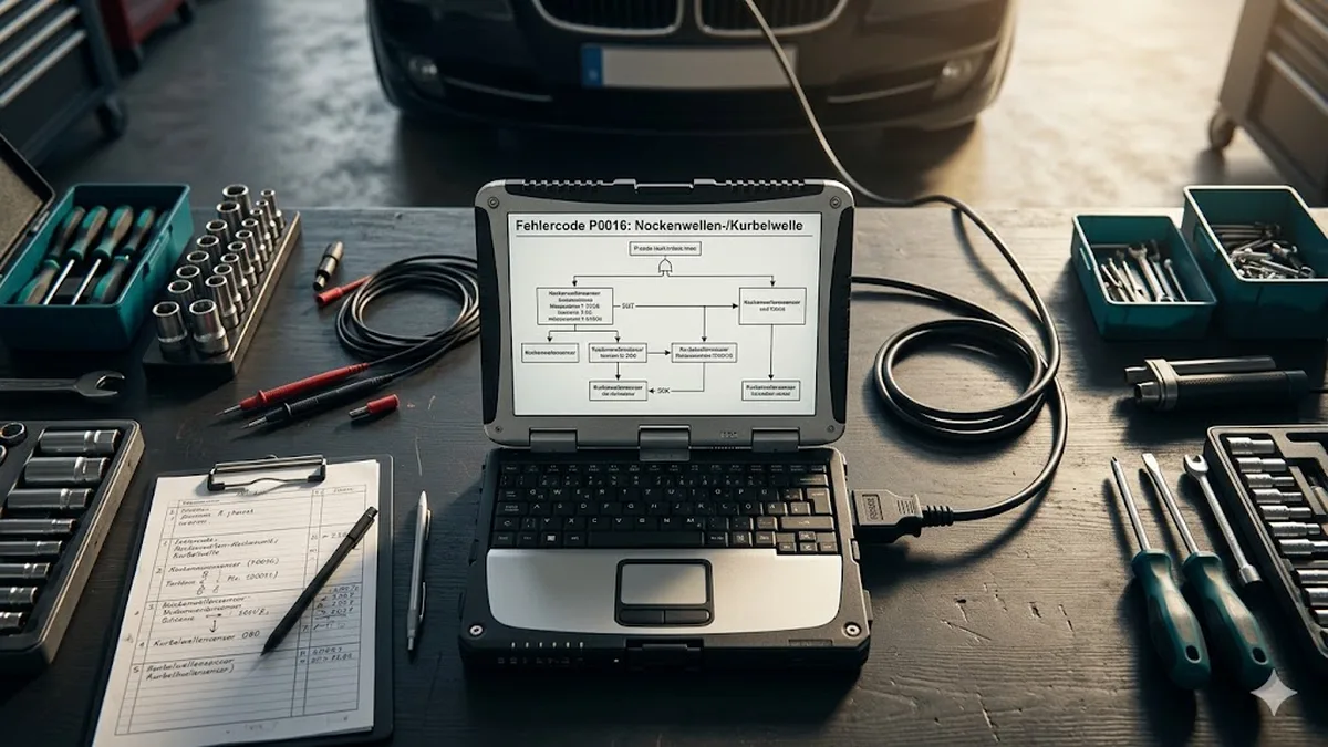 Ein OBD2-Scanner zeigt P0016 als generischen Code. Die Herstellerdiagnose mit XENTRY, ODIS oder ISTA liefert die entscheidenden Zusatzinformationen: