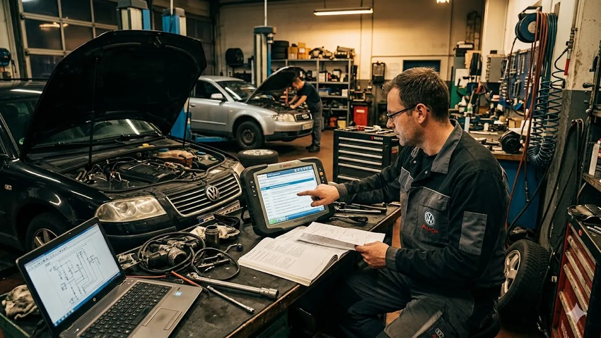 Bei VW-Gruppen-Fahrzeugen setzen wir das ODIS-Diagnosesystem (Offboard Diagnostic Information System) ein – das gleiche System, das in VW-, Audi-, Skoda- und Seat-Vertragswerkstätten verwendet wird:
